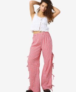 Noisy May Women’s Clothes Checked Trousers | Tomato