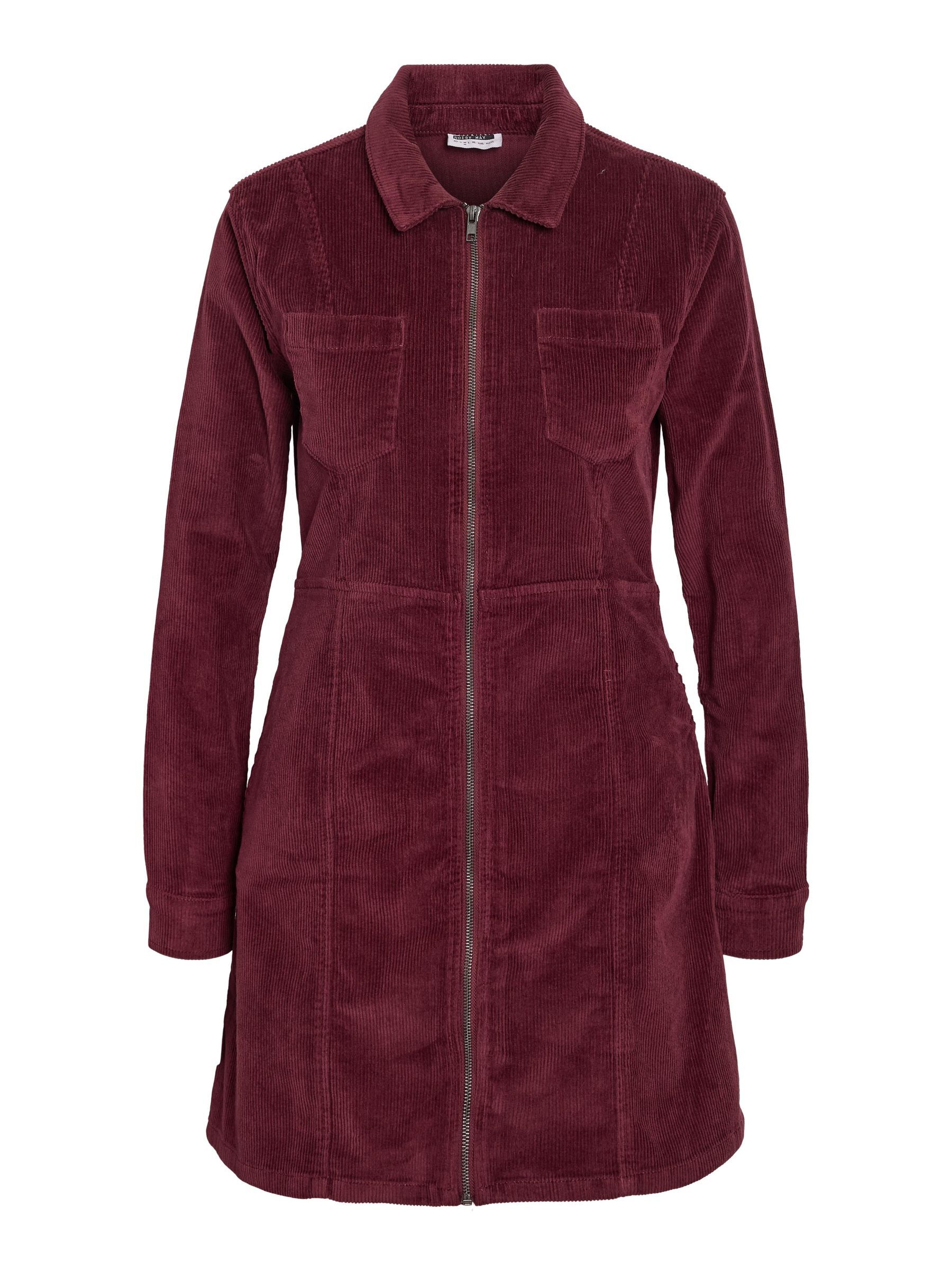 – Long sleeved corduroy mini dress- Spread collar- Extended shoulders- Buttoned cuffs- Zip-up front- Patch pockets at chest- Regular fit- Model is wearing size M