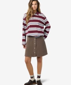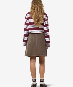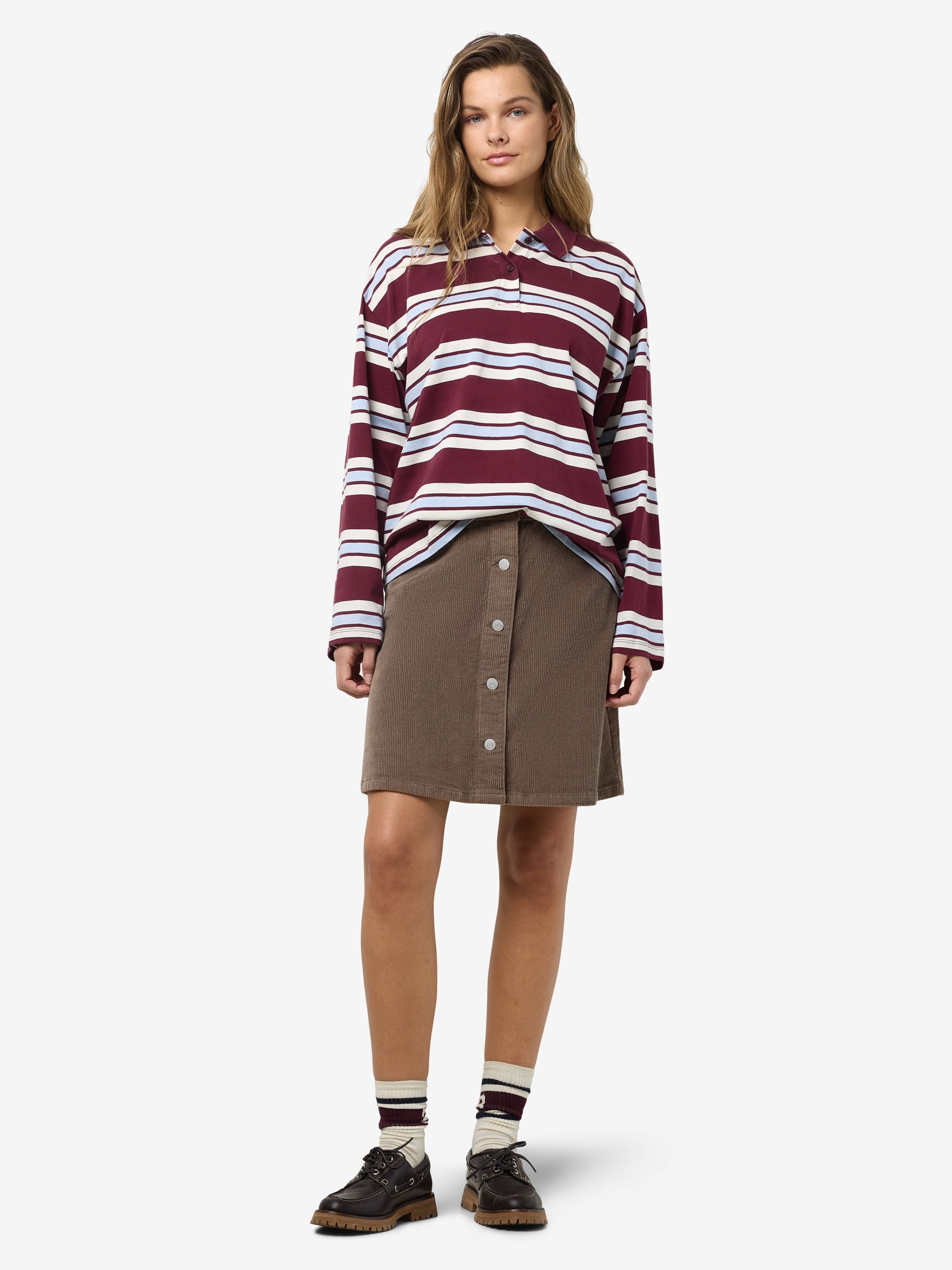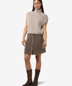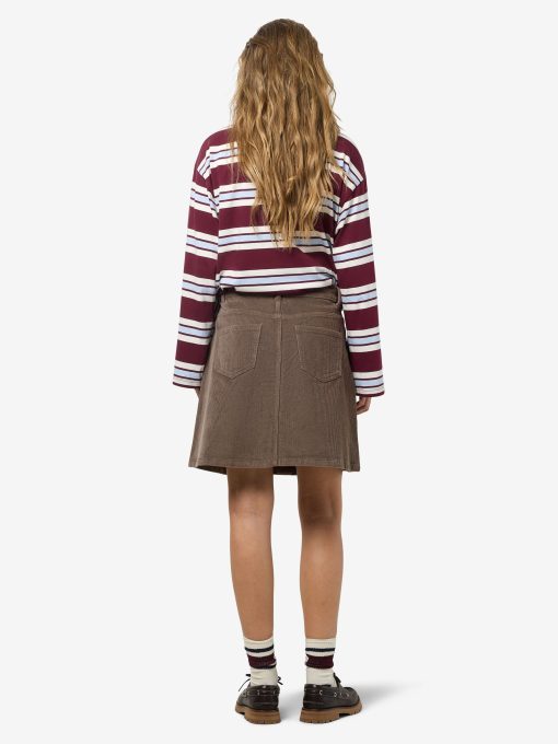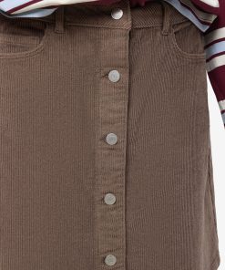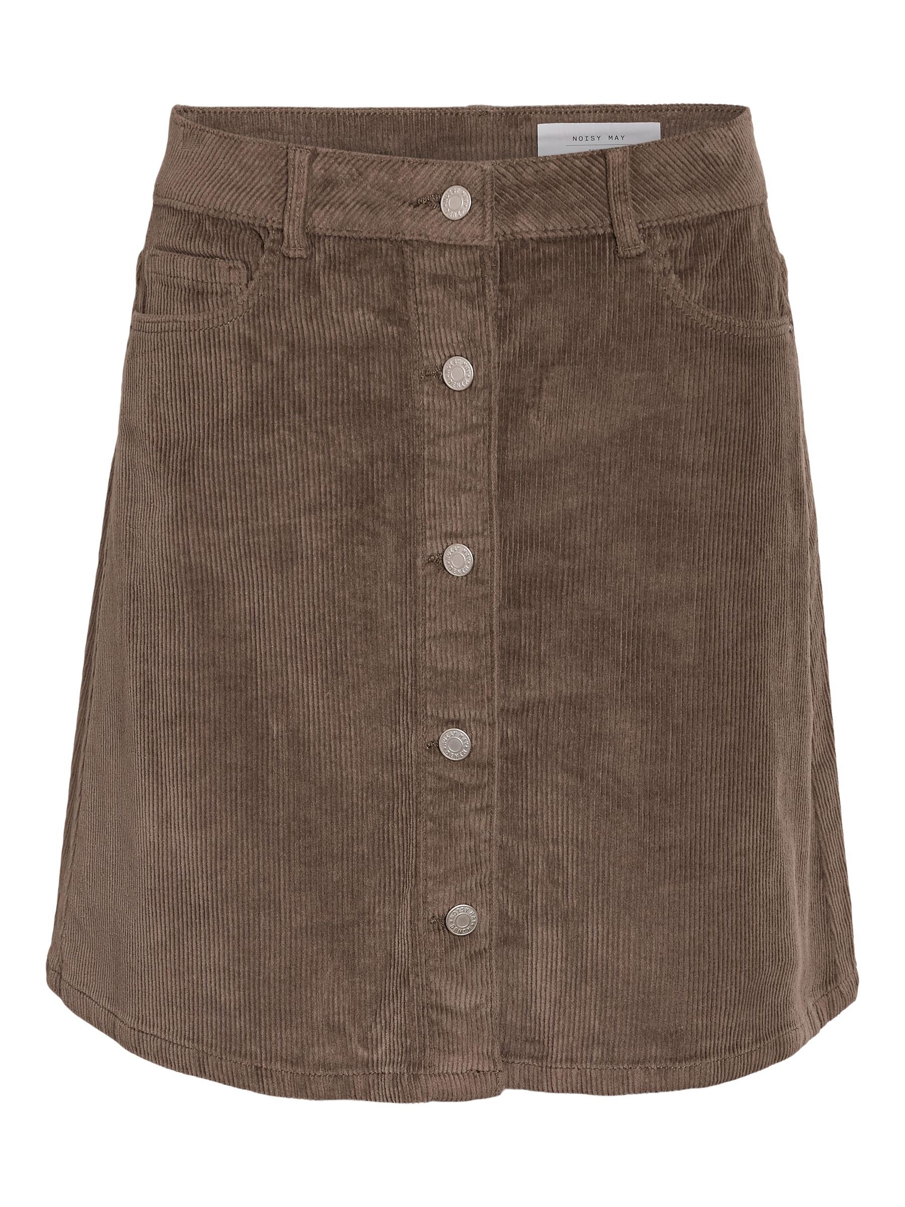 – Corduroy mini skirt- Mid rise waist with belt loops- 5-pocket design- Rivet button front fastening- Regular fit- Model is wearing size M