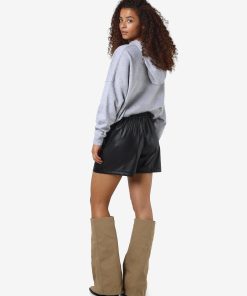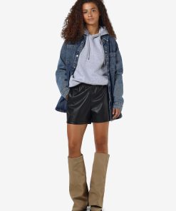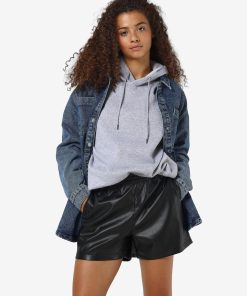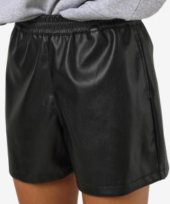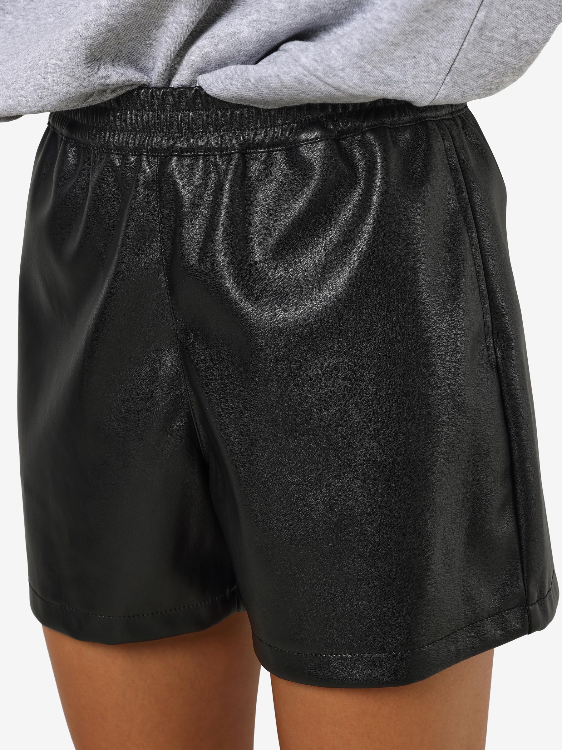 – Faux leather shorts – High waisted – Slit pockets – Elasticated waist – Relaxed fit- Selma is 174 cm tall and wears a size S