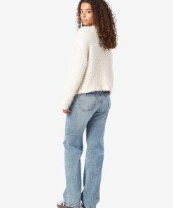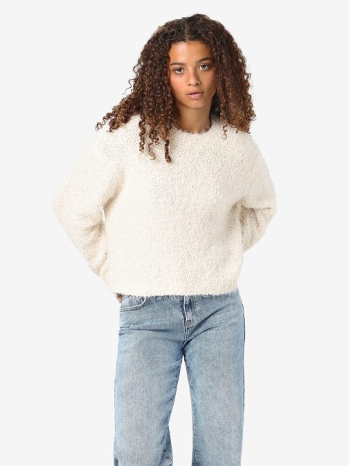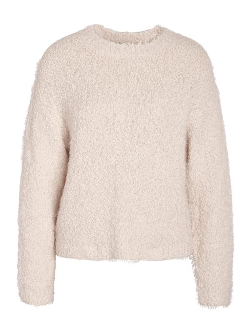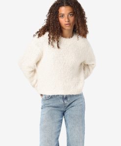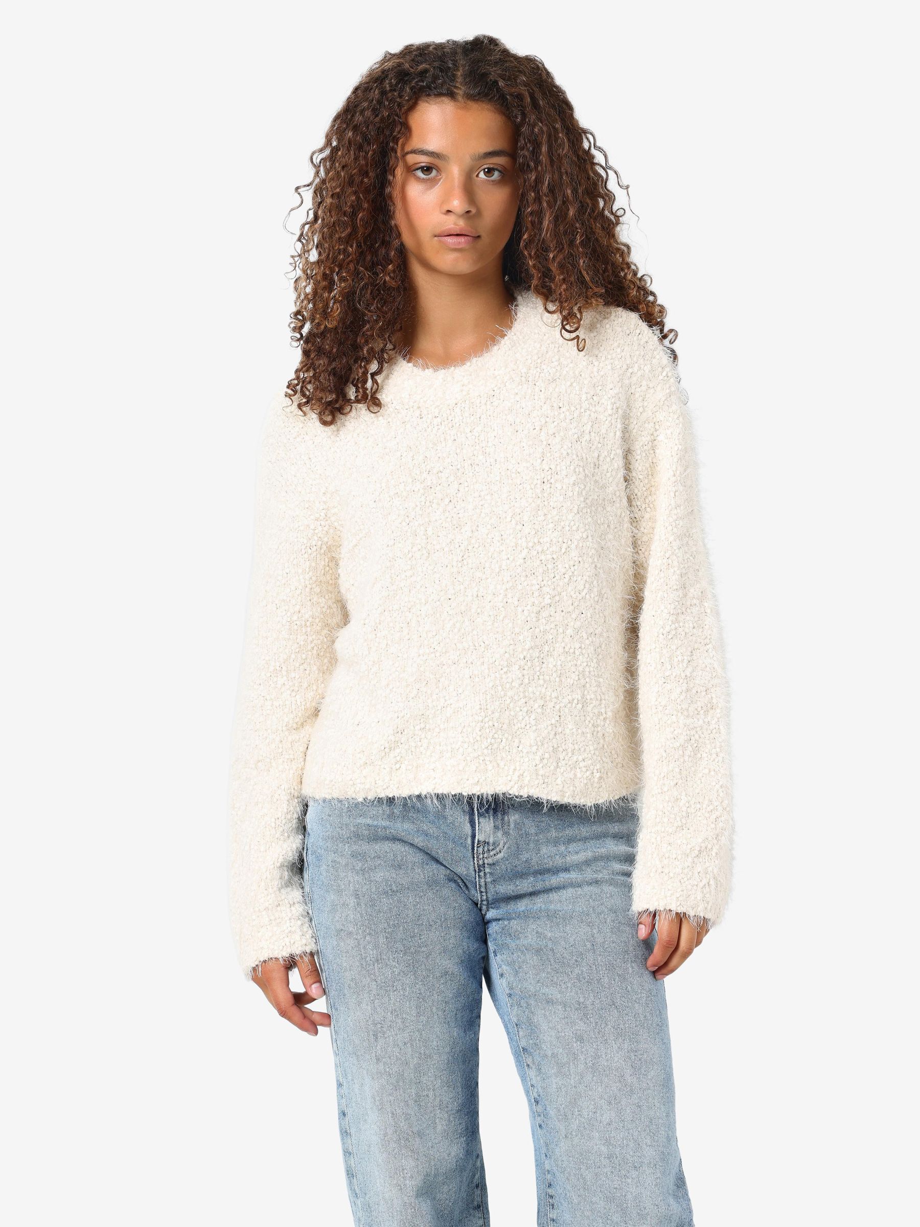 – Knitted pullover – Fluffy material – Round neckline – Long sleeved – Dropped shoulders – Relaxed fit