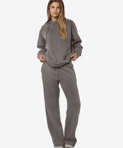 – Loose normal waist sweatpants- Shirred drawstring waist- Side pockets- Straight leg
