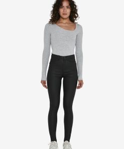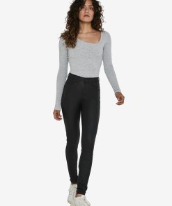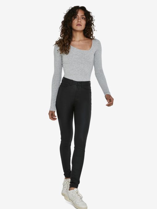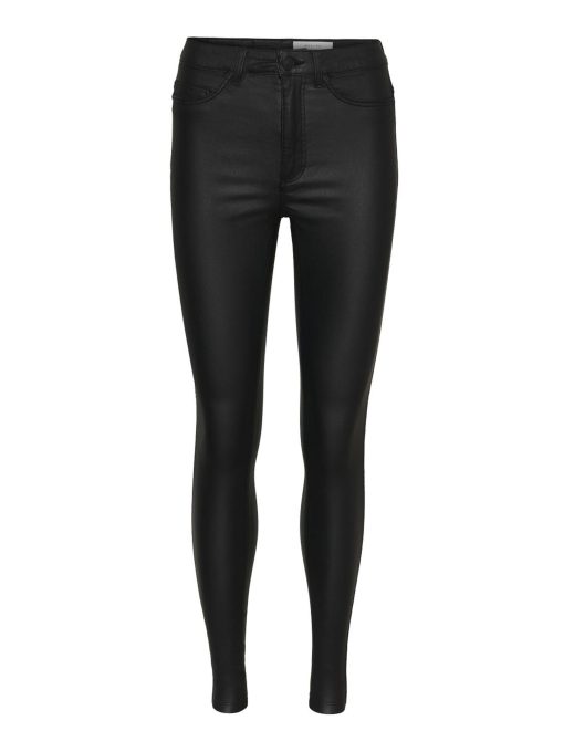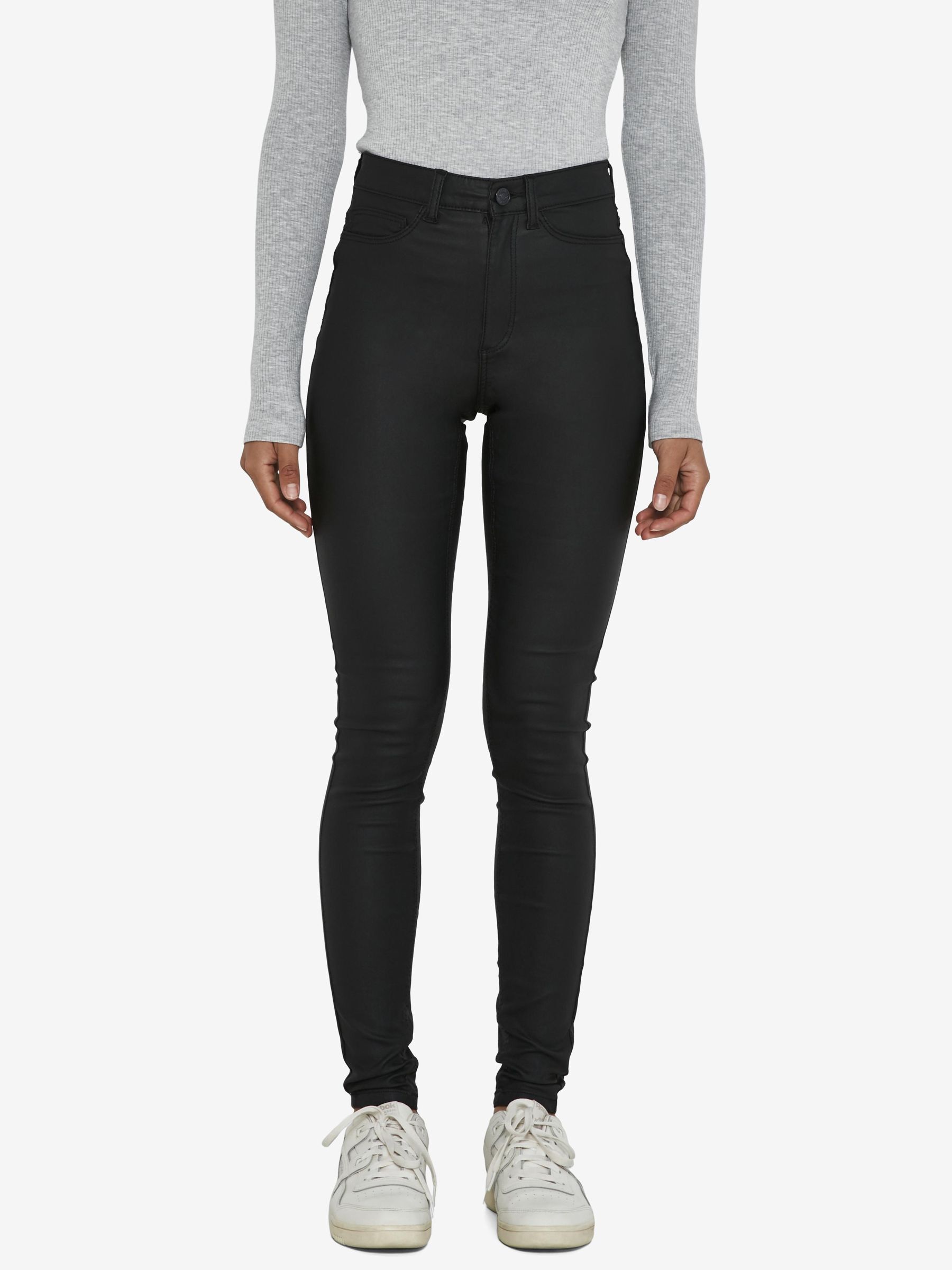 – High waisted coated skinny jeans- Belt loops- Zip fly with rivet button fastening- Five pocket design- Skinny fit