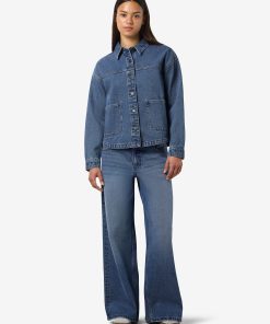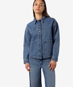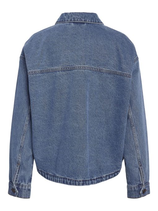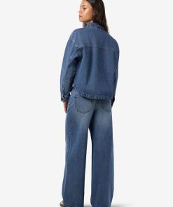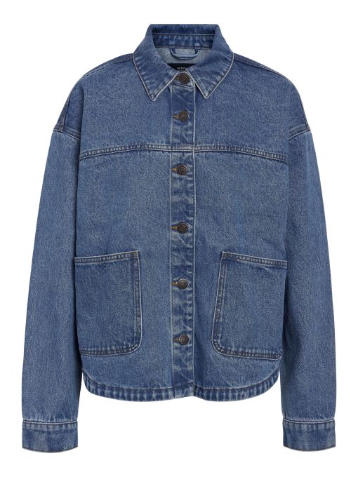 – Medium blue wash denim jacket- Part of a matching set- Spread collar- Dropped shoulders- Long sleeves with buttoned cuffs- Front patch pockets- Button-up front- Regular fit- Model is wearing size M